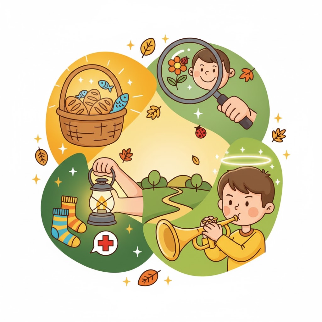 - 💡 어린이 교훈: 작다고 망설이지 마세요! 우리의 작은 것(재능, 용돈, 마음)이라도 용기 내어 하나님께 드리면, 예수님은 그것을 가지고 상상도 못 할 큰 기적을 만드신답니다.
